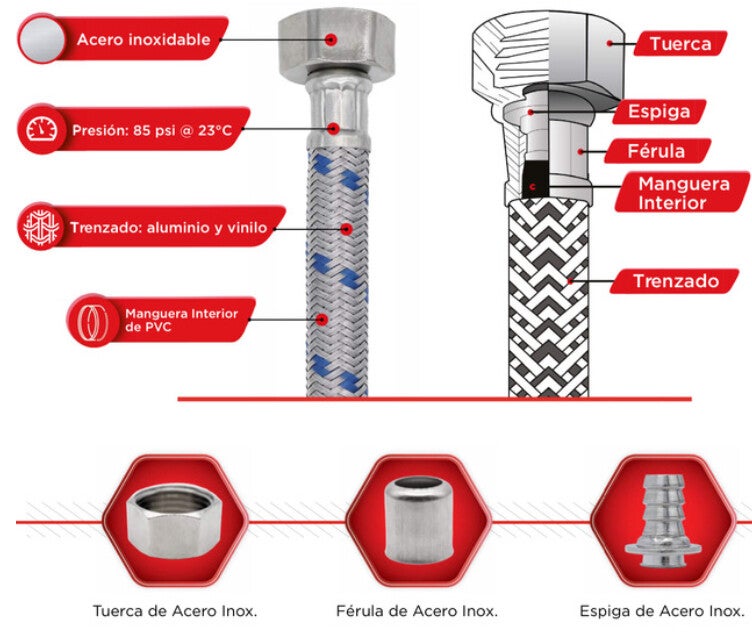 MANGURA ALIMENTADORA TUERCA ACERO INOXIDABLE 1/2" X 1/2"